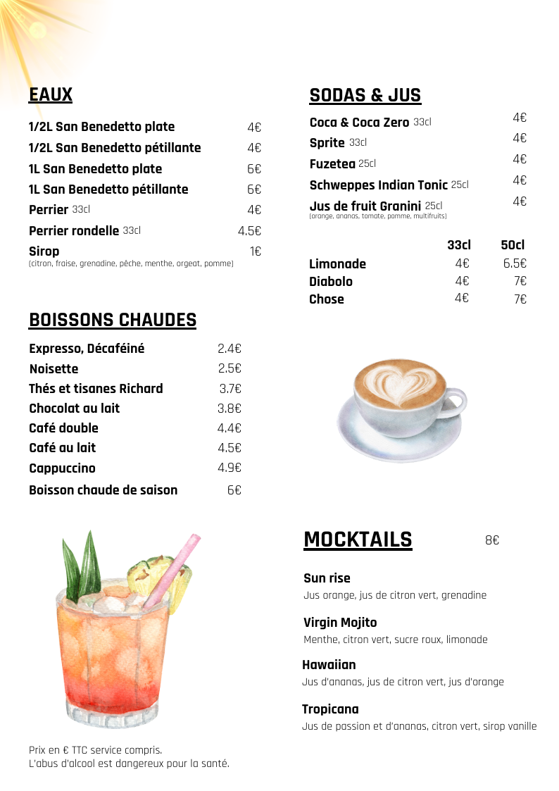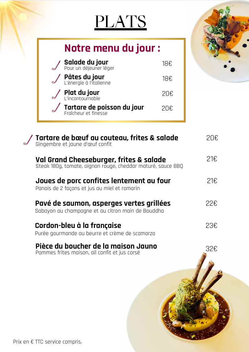 Le restaurant est ouvert du lundi au dimanche. Service continu 11h00 à 16h00.