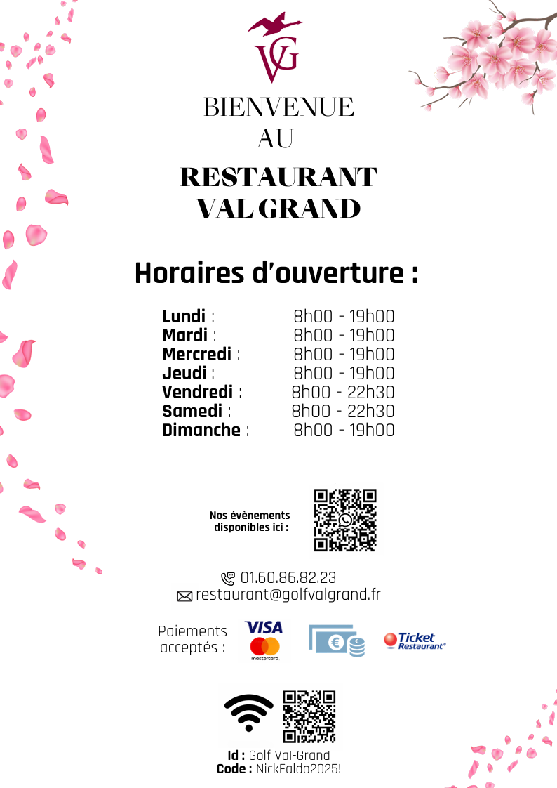 Le restaurant est ouvert du lundi au dimanche. Service continu 11h00 à 16h00.